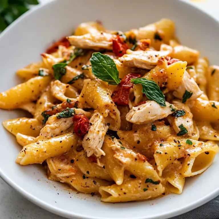 Imagine the comforting aroma of garlic and chicken wafting through your kitchen, mingling with the vibrant scent of fresh basil and sun-dried tomatoes. This is not just any dish; it’s an experience that transforms a regular weeknight into a culinary celebration. With every twirl of perfectly cooked pasta and tender chicken, you realize you’re not just making dinner—you’re crafting memories.