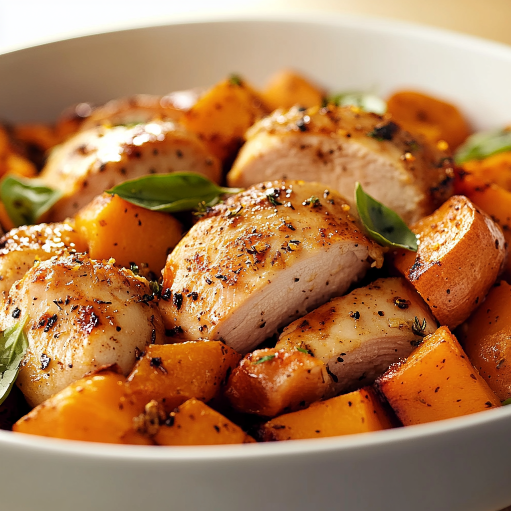 The aroma of roasted chicken mingling with the sweet, earthy scent of baked sweet potatoes fills the kitchen, creating a comforting embrace that feels like a warm hug. Picture this: tender chicken, seasoned to perfection, nestled alongside vibrant orange sweet potatoes, each bite offering a delightful contrast of savory and sweet flavors that dance on your palate.