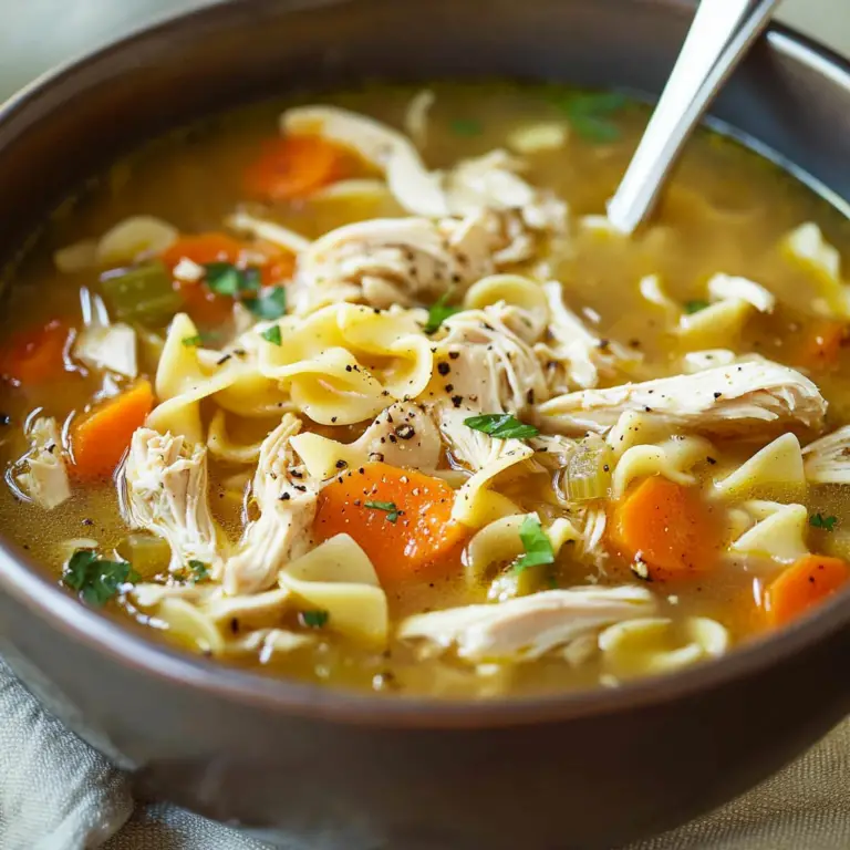 Every time I make this homemade chicken noodle soup, it takes me back to my childhood kitchen, where my grandmother’s laughter filled the air while she stirred her pot of love. It’s perfect for family gatherings or when you’re feeling under the weather—just the remedy to lift your spirits and tantalize your taste buds.