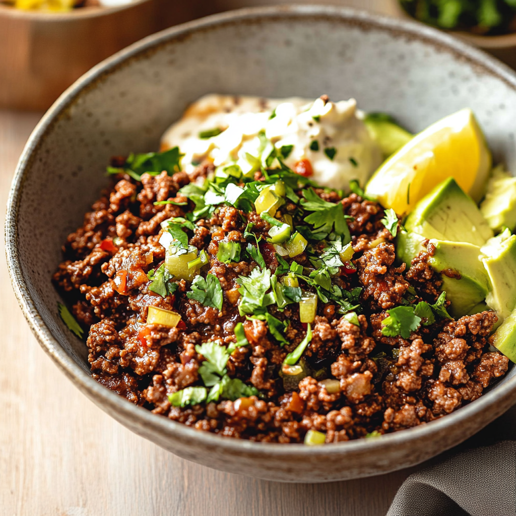 Ground beef bowls are the ultimate comfort food, offering a warm and hearty meal that’s perfect for any occasion. This dish combines savory lean ground beef with colorful bell peppers, sweet onions, and aromatic spices, all topped with fresh cilantro and a squeeze of lime. In under 30 minutes, you can create a flavorful, customizable bowl that’s not only satisfying but also visually appealing—ideal for weeknight dinners or casual gatherings with friends.
