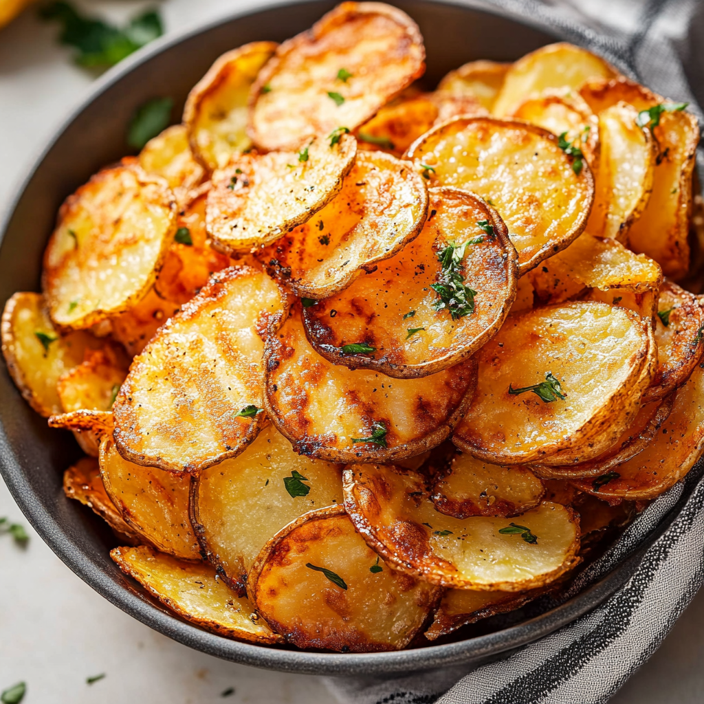 Soak sliced potatoes in cold water for at least 30 minutes before cooking for maximum crunchiness.