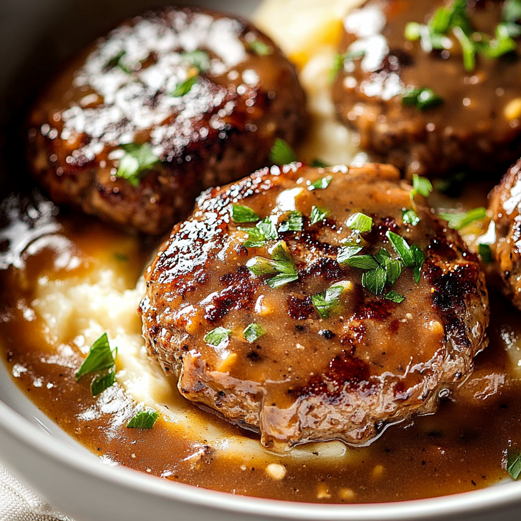 - This dish combines juicy beef patties with rich, flavorful gravy, making it irresistible