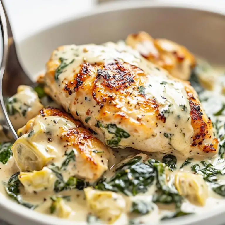 Indulge in the rich flavors of Spinach Artichoke Chicken, where tender chicken breasts are enveloped in a luscious creamy sauce made with fresh spinach and artichokes. This dish is perfect for any occasion, from cozy family dinners to elegant gatherings, offering both comfort and a touch of sophistication. With a melty cheese topping and a hint of garlic, every bite is sure to please your palate and impress your guests.