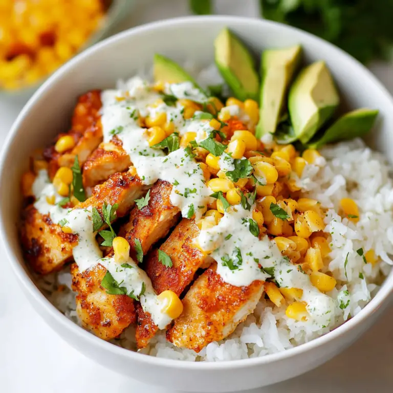 Savor the vibrant flavors of this Street Corn Chicken Rice Bowl, a delightful dish that brings together juicy grilled chicken, smoky charred corn, and fluffy jasmine rice. Topped with creamy avocado and zesty lime, every bite is a celebration of summer street food. Perfect for family dinners or meal prep, this bowl is easy to customize based on your cravings. Gather around and enjoy an experience that transports you straight to a bustling food market!
