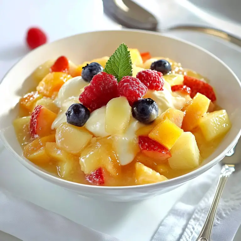Fruit salad with vanilla pudding is like summer in a bowl, bursting with colors and flavors that dance on your taste buds. Picture this: juicy strawberries, tropical pineapple, and sweet bananas all mingling together, draped in a creamy vanilla pudding that adds just the right amount of indulgence. It’s not just a dish; it’s an experience that takes you back to family picnics and sunny afternoons, where laughter mixes with the scent of fresh fruit wafting through the air. This is the kind of dessert that makes you feel like a kid again, excited for all the deliciousness that’s about to unfold.