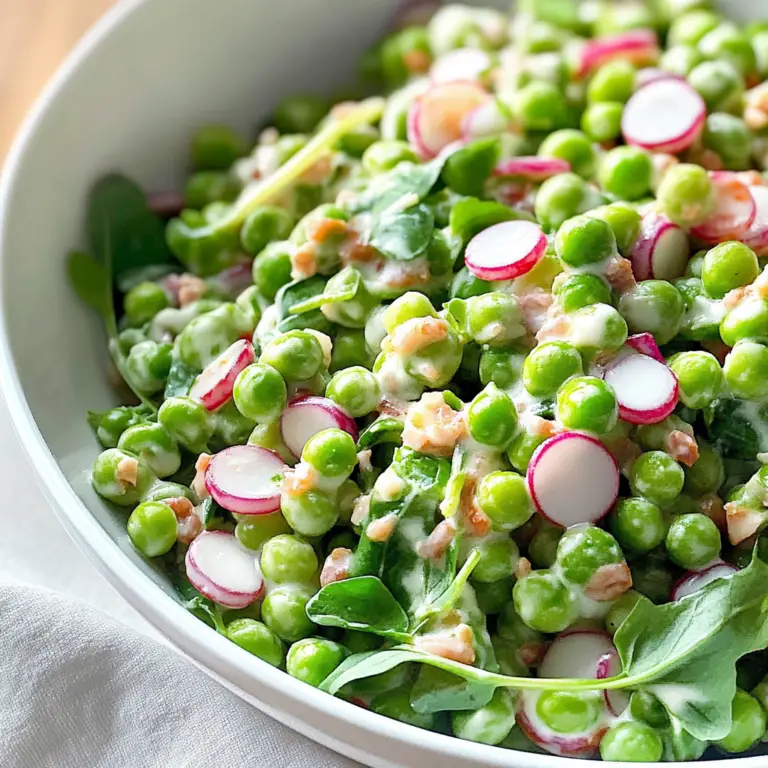 Pea salad is a refreshing and colorful dish that combines sweet green peas, crunchy red onions, and a creamy dressing, making it the perfect side for any occasion. Quick to prepare and easily customizable, this vibrant salad is sure to impress at picnics, barbecues, or family gatherings. With its delightful crunch and bright flavors, every bite promises to be satisfying and delicious.