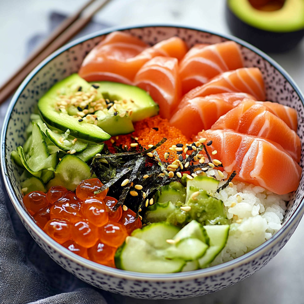 Savor the vibrant flavors of a homemade sushi bowl, where fresh ingredients come together to create a colorful and delicious meal. This bowl features perfectly seasoned sushi rice topped with succulent slices of fish, creamy avocado, crunchy cucumbers, and a sprinkle of toasted sesame seeds. Ideal for both gatherings and cozy nights in, this customizable dish is sure to impress your friends and family with its beauty and flavor.