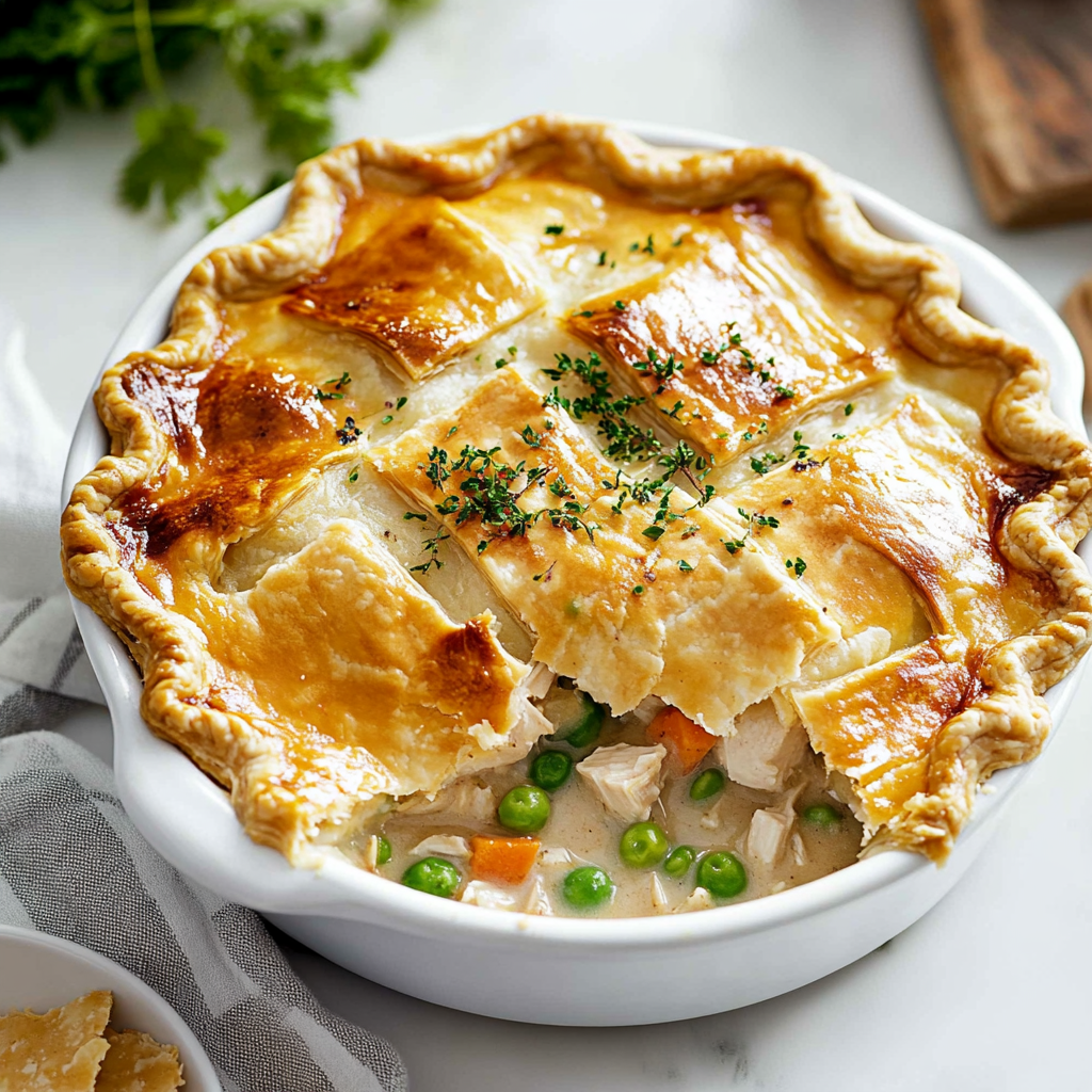 Indulge in the warmth and nostalgia of this easy chicken pot pie, featuring a flaky, golden crust filled with savory chicken, fresh veggies, and creamy goodness. Perfect for family dinners or special gatherings, this dish brings smiles and satisfaction to every table. Whip it up effortlessly and enjoy a comforting meal that feels like a warm hug.