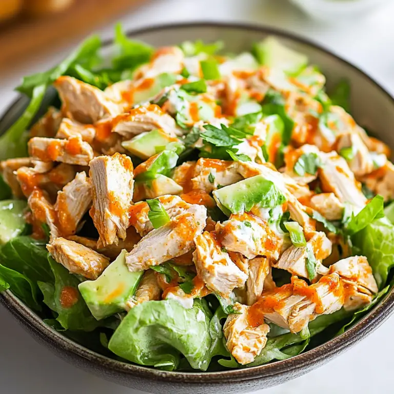 Buffalo Chicken Salad is a flavorful and vibrant dish that combines tender chicken coated in spicy buffalo sauce with crisp greens, juicy tomatoes, and creamy dressing. Perfect for a picnic or a cozy dinner, this salad delivers a delightful crunch and a kick of heat that will make your taste buds dance. Quick to prepare, it’s an ideal choice for busy weeknights or gatherings with friends and family.