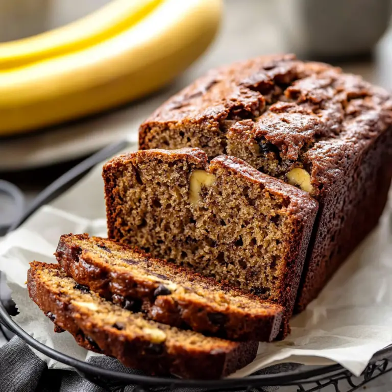 Banana bread is a timeless classic that envelops your home in the comforting aroma of freshly baked goodness. With its golden-brown crust and soft, moist interior, each slice bursts with the natural sweetness of overripe bananas. Perfect for breakfast, dessert, or an afternoon snack, this recipe will warm your heart and delight your taste buds. Gather your loved ones and create wonderful memories as you share this irresistible treat—it’s a guaranteed crowd-pleaser!