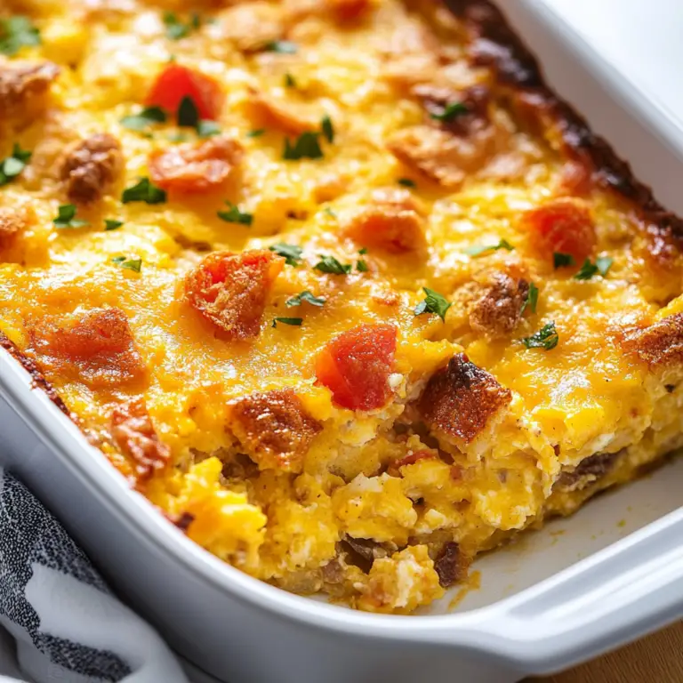 Breakfast casserole is the ultimate morning delight, merging creamy eggs, savory sausage, and melted cheese into a hearty dish that satisfies everyone at the table. This comforting meal is perfect for family gatherings or cozy Sunday brunches, transforming sleepy mornings into joyful culinary experiences. Easy to prepare and endlessly customizable, it’s a crowd-pleaser that will leave your loved ones asking for more.