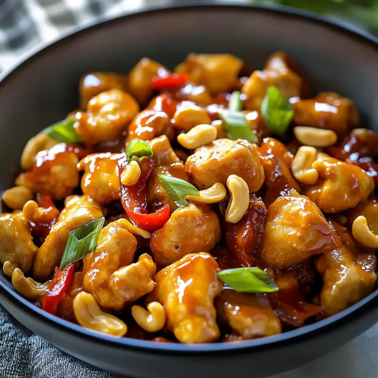 Cashew chicken is a delightful blend of tender chicken, crunchy roasted cashews, and fresh vegetables, all coated in a savory sauce. This quick and easy dish is perfect for busy weeknights or casual gatherings, providing an irresistible flavor experience that leaves everyone wanting more. With its vibrant colors and aromatic spices, this recipe transforms simple ingredients into a culinary masterpiece.