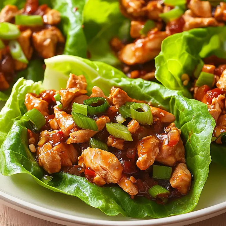 Chicken lettuce wraps are a delightful fusion of juicy chicken, crisp vegetables, and savory sauce all wrapped in fresh lettuce leaves. Perfectly suited for gatherings or a simple weeknight dinner, these wraps are not only delicious but also healthy and customizable to your taste. With vibrant colors and textures, they are sure to impress anyone at your table. Dive into this culinary adventure and enjoy every flavorful bite!
