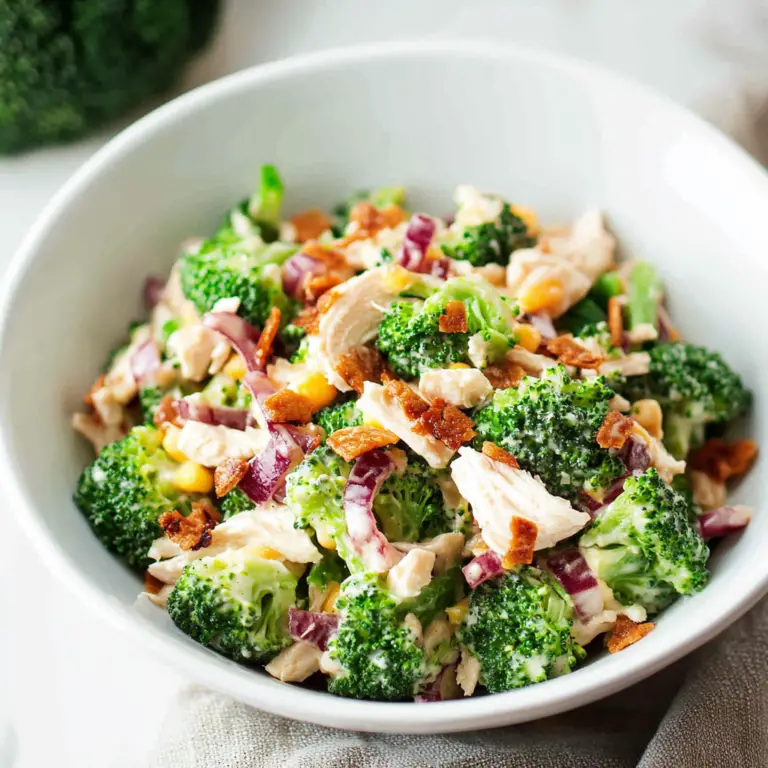 This Chicken Salad Chick Broccoli Salad is a delightful blend of crisp broccoli and tender chicken, tossed in a creamy, tangy dressing. Perfect for picnics, barbecues, or cozy dinners, this salad brings vibrant flavors and textures to any meal. Quick to prepare and adaptable for various tastes, it’s sure to be a hit at your next gathering!