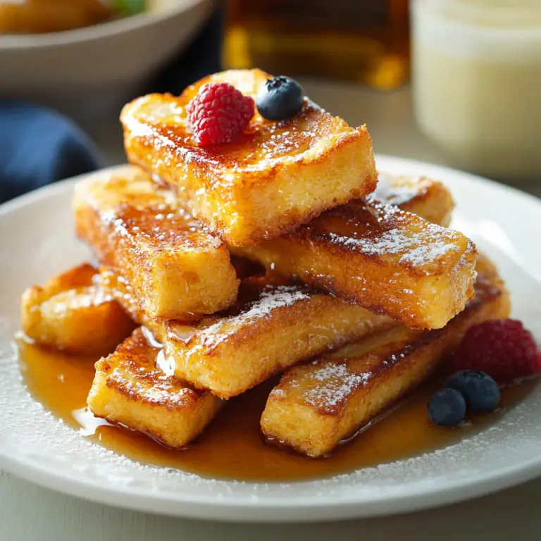 Indulge in the delightful taste of homemade French toast sticks! These crispy, cinnamon-sugar coated treats are perfect for breakfast or an after-school snack. With a soft, custardy center, they pair perfectly with syrup or your favorite toppings. Easy to make and sure to please both kids and adults alike, you’ll want to whip up a batch for any occasion!