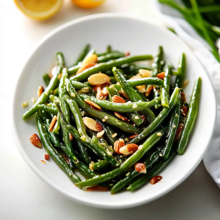 Experience the delightful fusion of crisp green beans and nutty toasted almonds in this classic Green Beans Almondine dish. Perfect for any occasion, this recipe transforms a simple vegetable into a gourmet side that will impress your guests and elevate your meal. With bright flavors from fresh garlic and lemon, it’s a quick yet elegant addition to holiday feasts or weeknight dinners.