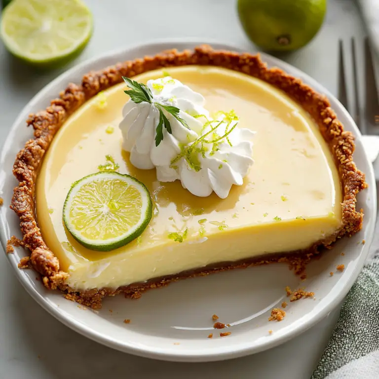 Key lime pie is a delightful dessert that captures the essence of summer with its vibrant citrus flavor and creamy texture. This easy-to-make treat features a buttery graham cracker crust, a zesty filling made from fresh key limes, and is topped with luscious whipped cream. Perfect for any occasion, this pie is sure to become a crowd-pleaser that brightens up your table and tantalizes your taste buds.