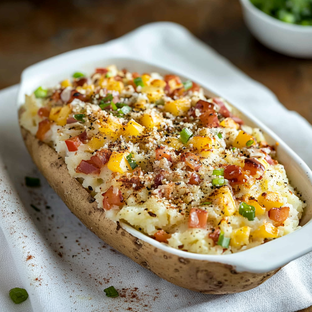 This dish brings back memories of family gatherings where laughter fills the air like the aroma of baked potatoes. Picture yourself at a friendly potluck, surrounded by delicious dishes while holding your loaded creation like a trophy. It’s perfect for game nights or any occasion when you want to impress without breaking a sweat in the kitchen.