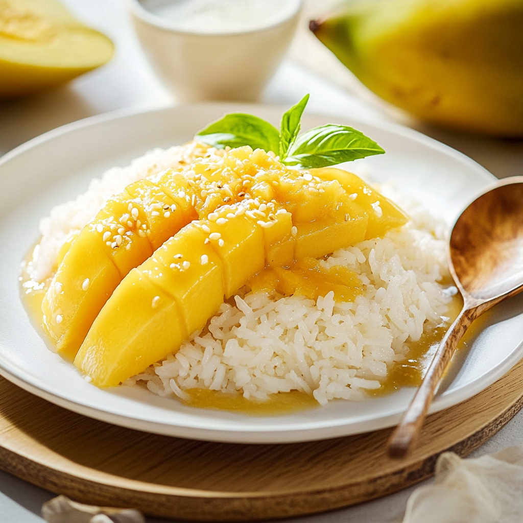 - The fragrant coconut milk beautifully complements the sweet mango, making each bite a flavorful experience
