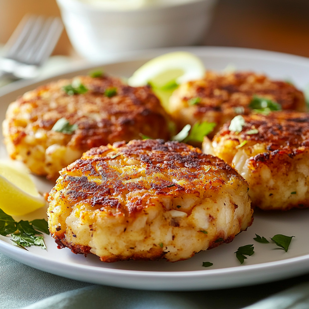 Start by mixing your crab meat with breadcrumbs, eggs, and seasonings. Shape the mixture into patties, then chill them briefly before pan-frying until golden brown for that perfect crisp.
