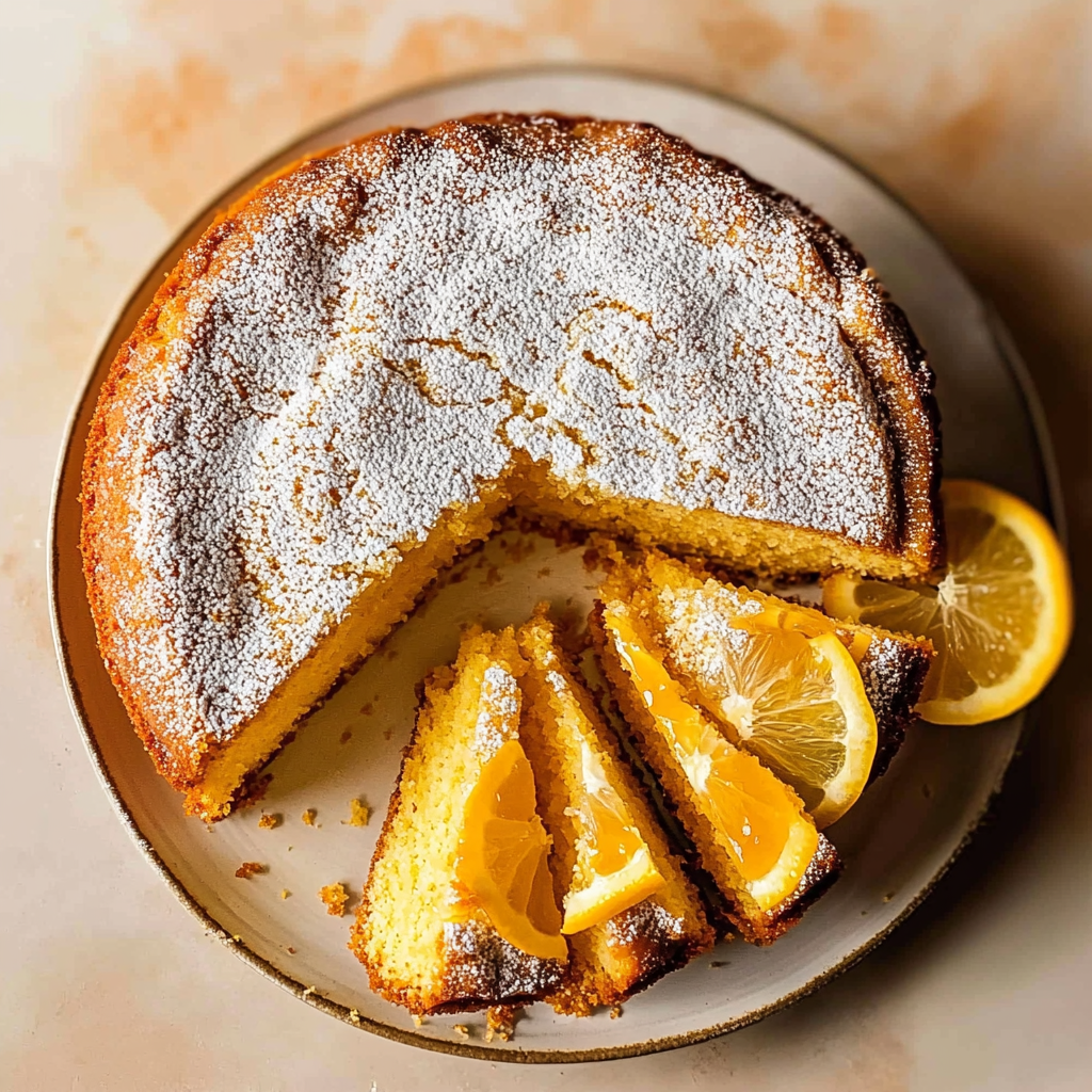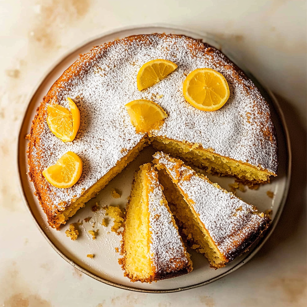 7. Serve & Enjoy: Once cooled, slice your olive oil cake recipe into pieces and serve as is or with a dusting of powdered sugar for an extra touch of sweetness.