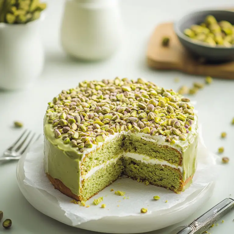 Pistachio cake is a delightful dessert that combines nutty flavors with a moist texture, topped with a creamy cream cheese frosting. Its vibrant green hue makes it not only delicious but also visually appealing, perfect for birthdays or casual gatherings. This easy-to-follow recipe guarantees a cake that will impress your guests and leave them asking for more.