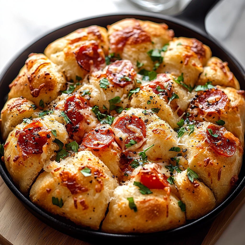 This pull apart pizza bread is sure to be a hit at any gathering or just as an indulgent treat while binge-watching your favorite series!