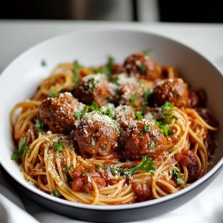 Indulge in the comforting embrace of homemade spaghetti and meatballs, a dish that brings warmth and joy to any dining table. Tender, juicy meatballs nestled in rich tomato sauce atop perfectly cooked pasta create a delightful experience for family and friends alike. This easy recipe combines wholesome ingredients with vibrant flavors, making it a go-to meal for busy weeknights or special gatherings.