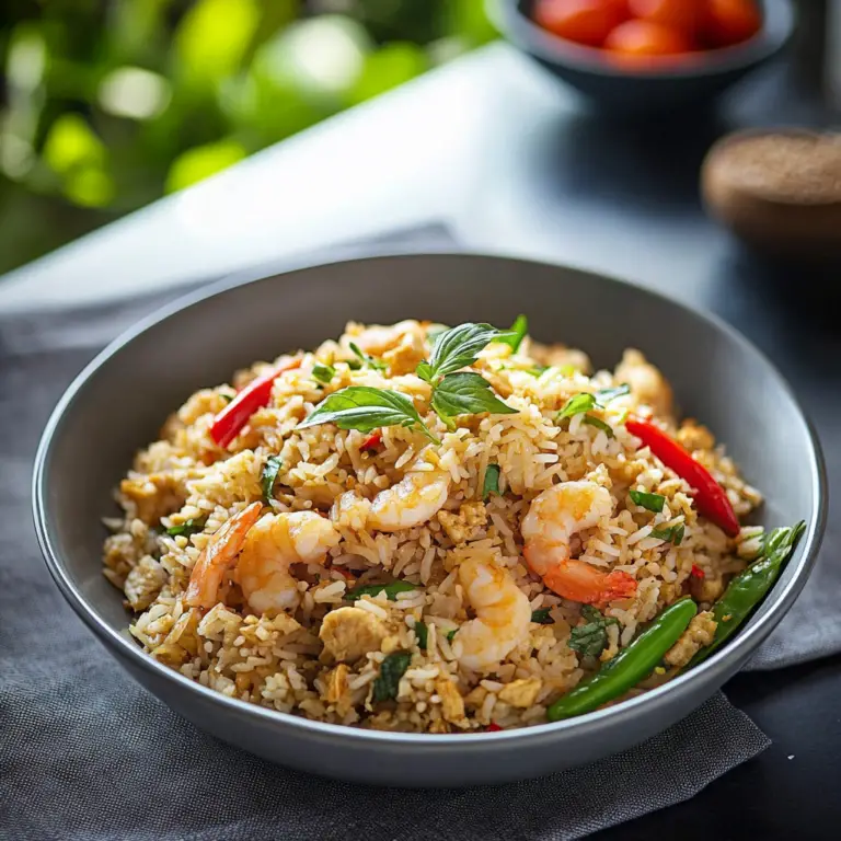 Thai fried rice is not just a meal; it’s an experience bursting with vibrant flavors and tantalizing aromas. Picture this: a plate of fluffy rice, golden and slightly crispy, mingling with colorful vegetables and succulent proteins, all wrapped in a savory embrace. The moment you take your first bite, your taste buds dance as the sweet, salty, and spicy notes come together in perfect harmony. This dish is like a party on your plate, promising to transport you straight to the bustling streets of Thailand.