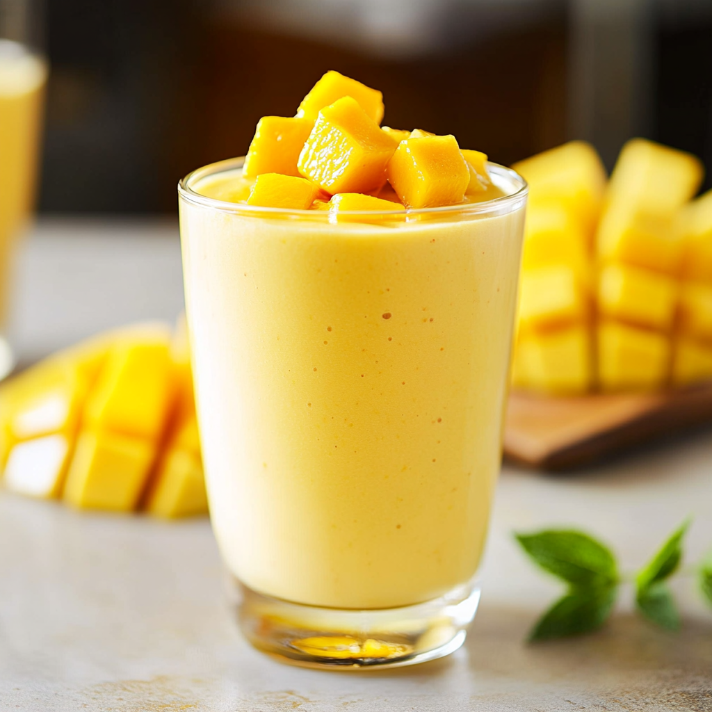 - Pour into glasses and garnish with fresh mint or a slice of mango.