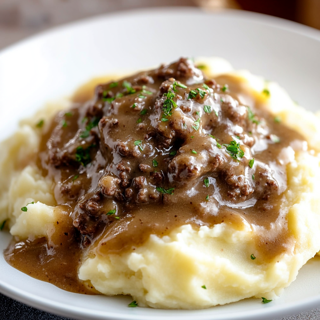 Indulge in a comforting classic with this Hamburger Gravy over Mashed Potatoes. This hearty dish features savory ground beef simmered in a rich, creamy gravy, served atop fluffy mashed potatoes. Perfect for weeknight dinners or family gatherings, it’s a meal that brings smiles and warmth to the table.