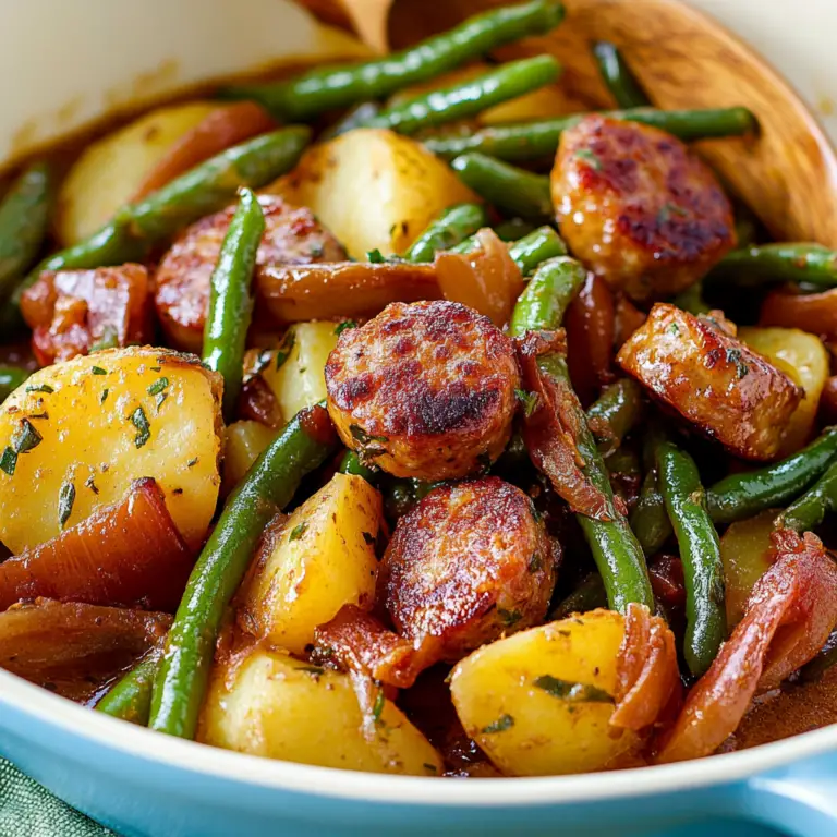 There’s something about the combination of sausage, potatoes, and green beans that dances on your taste buds like it’s auditioning for a Broadway musical. Picture this: juicy sausages sizzling in a pan, their savory scent mingling with the earthy aroma of roasted potatoes and the crisp freshness of green beans. It’s a flavor fiesta that makes your mouth water just thinking about it. Now, imagine serving this delightful dish at a family gathering, where everyone is swooning over the deliciousness and asking for seconds. That’s the magic of this simple yet spectacular recipe.