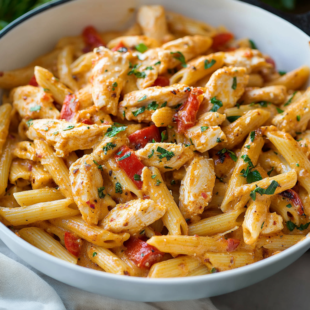 Cajun chicken pasta is a vibrant, flavor-packed dish that combines perfectly cooked pasta with tender chicken, colorful bell peppers, and a creamy Cajun sauce.