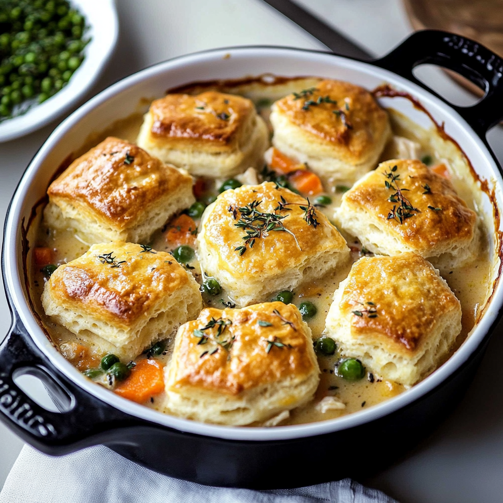 Indulge in the ultimate comfort food with this delightful chicken pot pie topped with golden, flaky biscuits. Tender chicken and vibrant vegetables swim in a creamy sauce, all encased in irresistibly buttery biscuits. Perfect for cozy family dinners or chilly evenings, this dish brings warmth and satisfaction to your table. Easy to prepare and customizable, it’s a recipe sure to create lasting memories.