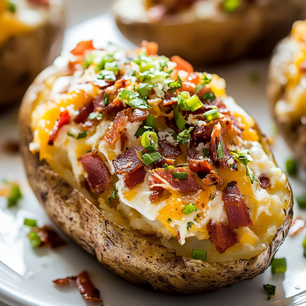 Indulge in the warm, creamy goodness of loaded baked potatoes that bring comfort and joy to any meal. This easy recipe features fluffy russet potatoes topped with rich sour cream, sharp cheddar cheese, crispy bacon bits, and fresh green onions. Perfect for busy weeknights or festive gatherings, these customizable delights are sure to impress your family and friends.
