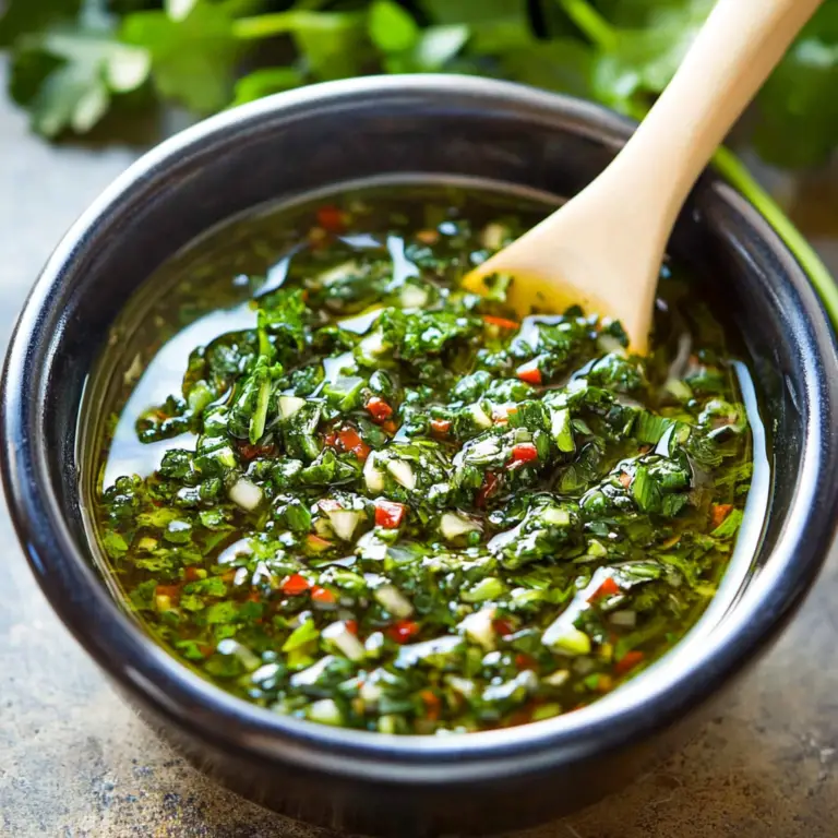 Chimichurri sauce is a vibrant and tangy condiment that elevates grilled meats and veggies to new heights. This zesty blend of fresh herbs, garlic, and red wine vinegar creates a flavor explosion that delights the palate. Perfect for summer barbecues or cozy dinners, this easy-to-make sauce will quickly become your go-to for adding a burst of freshness to any dish.